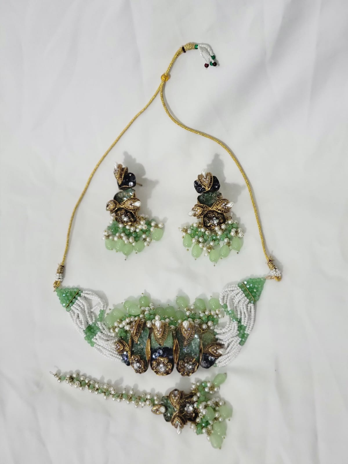 • Elegant Turkish earrings with multi-stone work and blue center stone